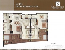 The Grand Luxxe Villa is 3,000 SqFt, and includes 2 master bedrooms, each with its own Jacuzzi tub and dual sinks. The Villa has an additional ½ bath off the living room and a second sitting area with a balcony, which may be used as a 3rd bedroom. The living room includes 2 sleeper sofas, a full kitchen with granite counter tops, blender, microwave, stove top, pots, pans and silverware. The large outdoor living balcony has a private plunge pool, dining table and complete patio furnishings. The Villa will accommodate 8 to 10 people.
